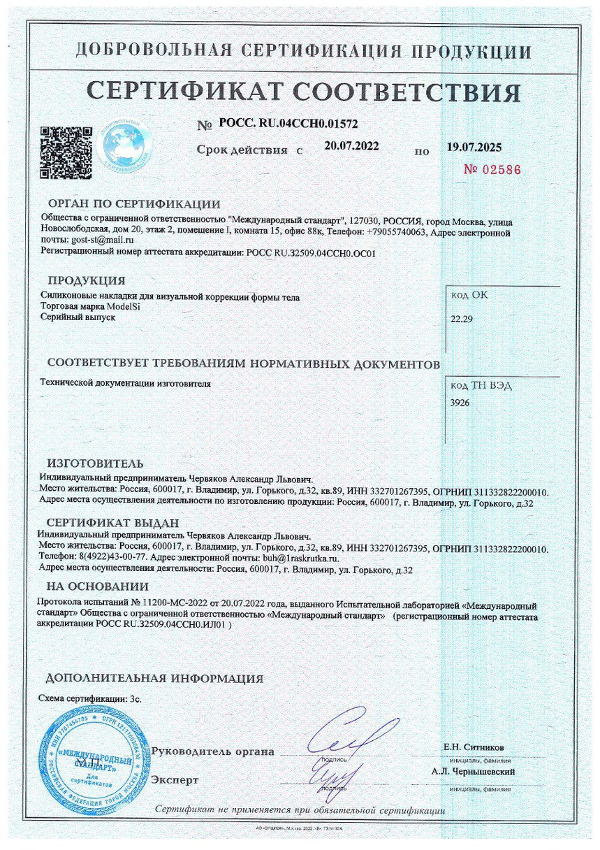 Мы являемся изготовителем накладок с 2017 года. Производим корректоры из американского силикона, который имеет биопробы к человеческой коже и является безопасным для контакта с кожей. Товар имеет СЕРТИФИКАТ КАЧЕСТВА.