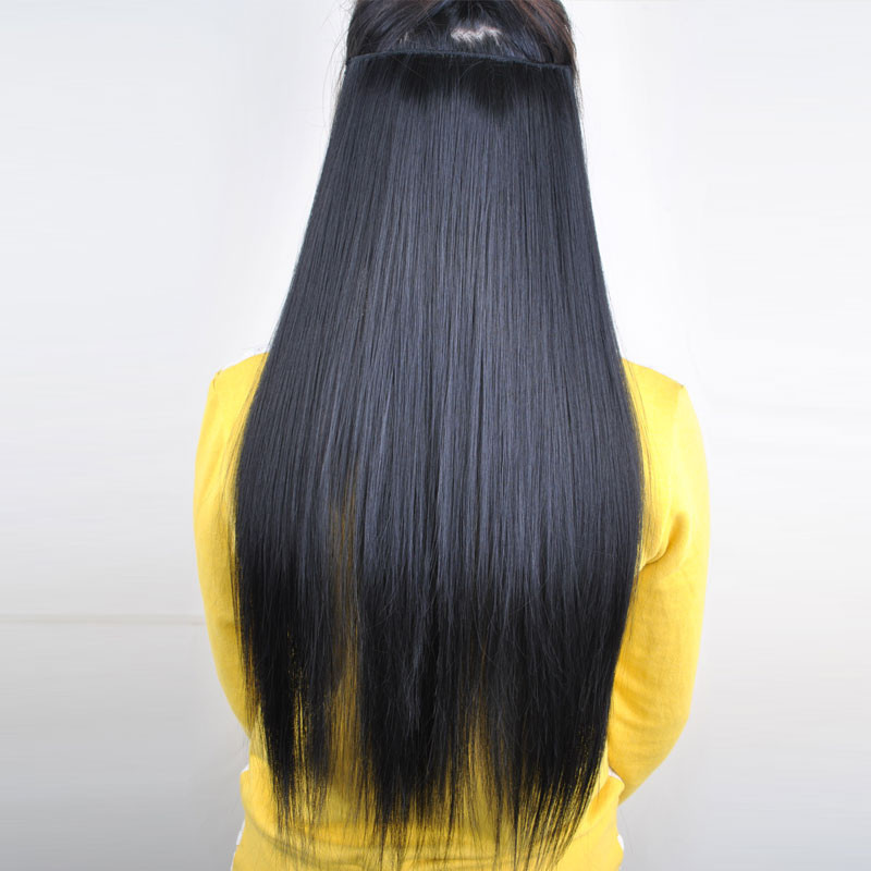 Термоволосы одной густой прядью на заколках 60см - черные #1