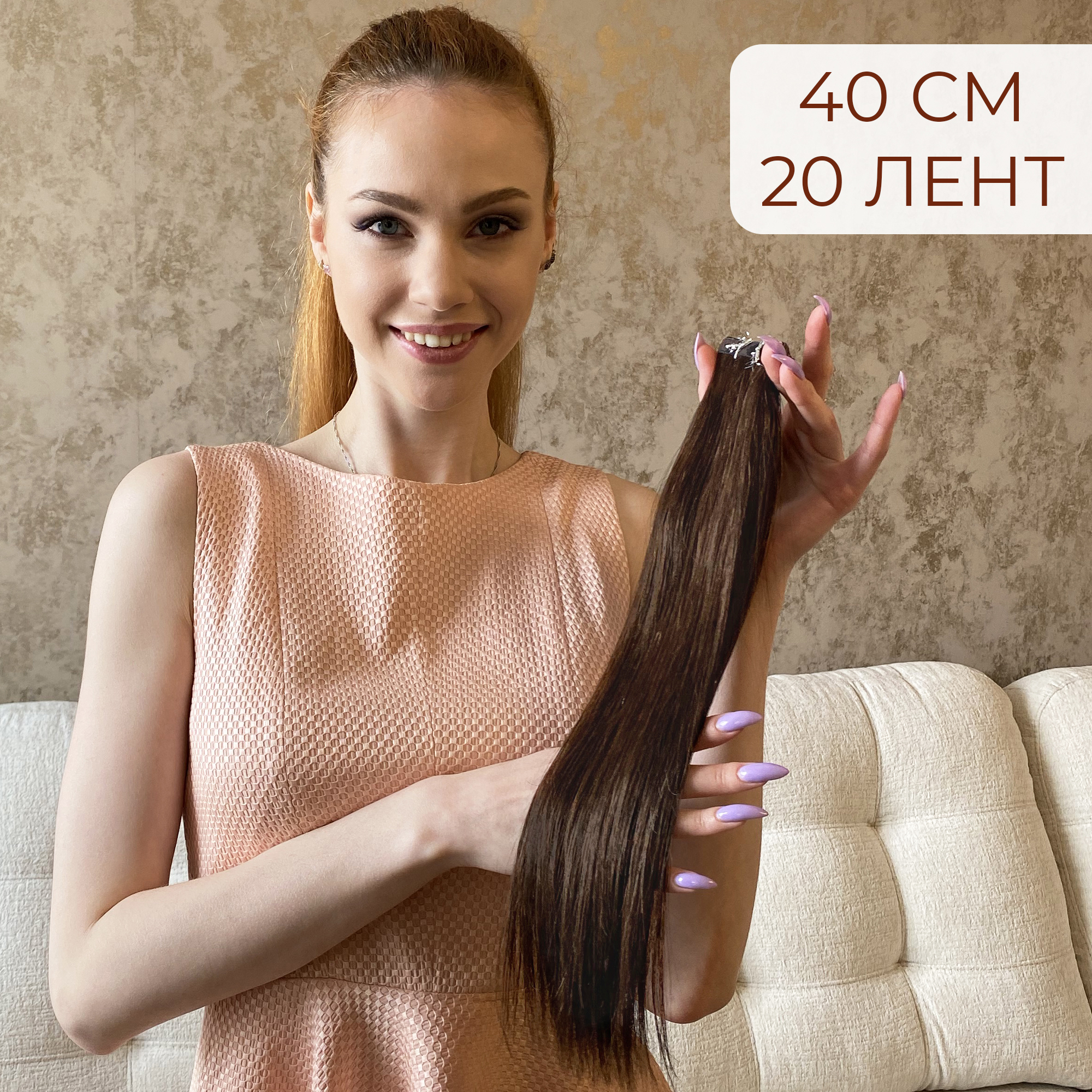 Набор натуральных волос на лентах для холодного клеевого наращивания - 20 прядей.