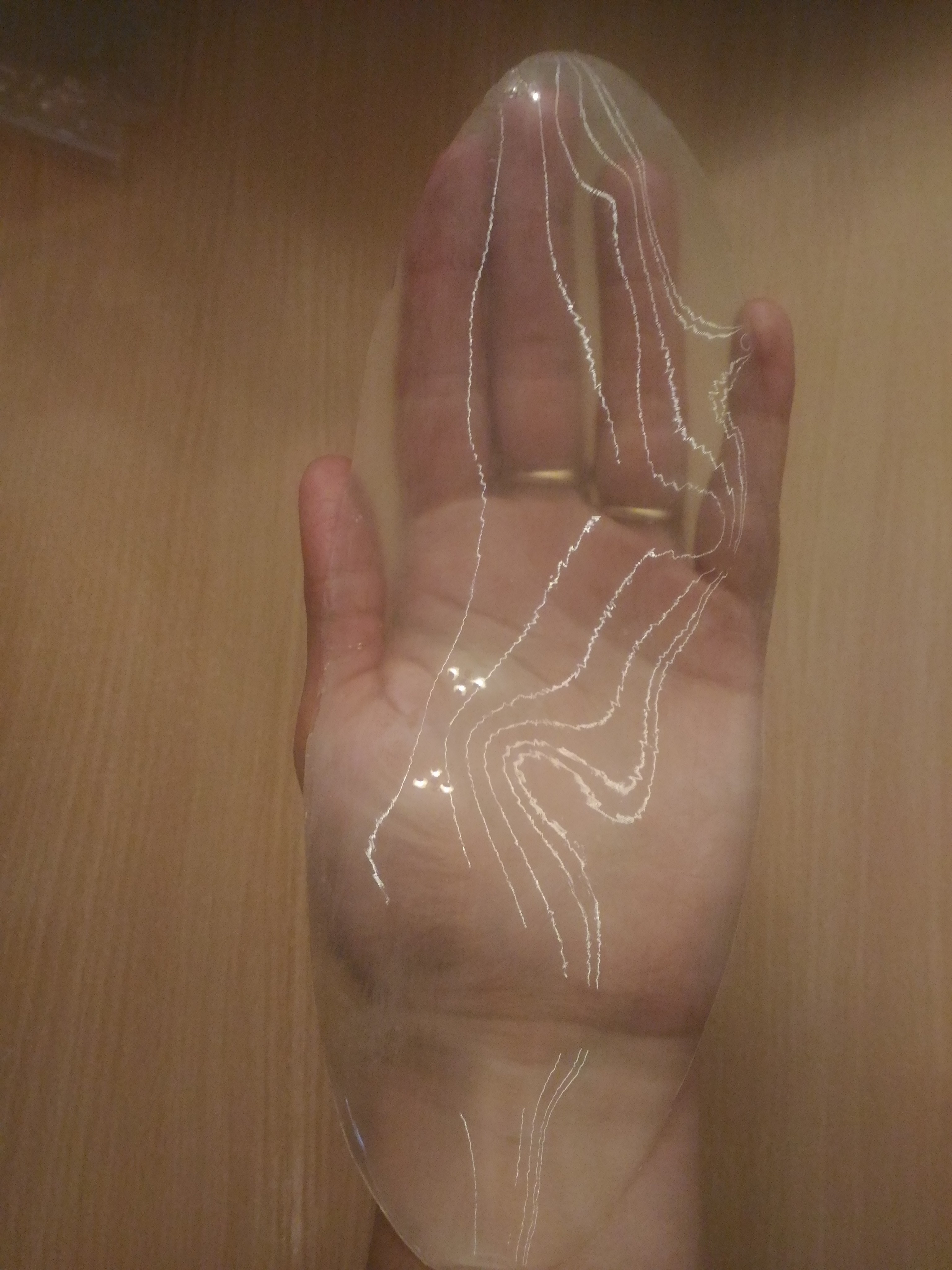 Накладки имеют небольшие разводы и размытости светлого цвета, которые не заметны на ноге (прозрачность можно оценить по фотографии).